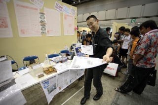 | 各メーカーのブースと8J1A記念局のブースです。 | |